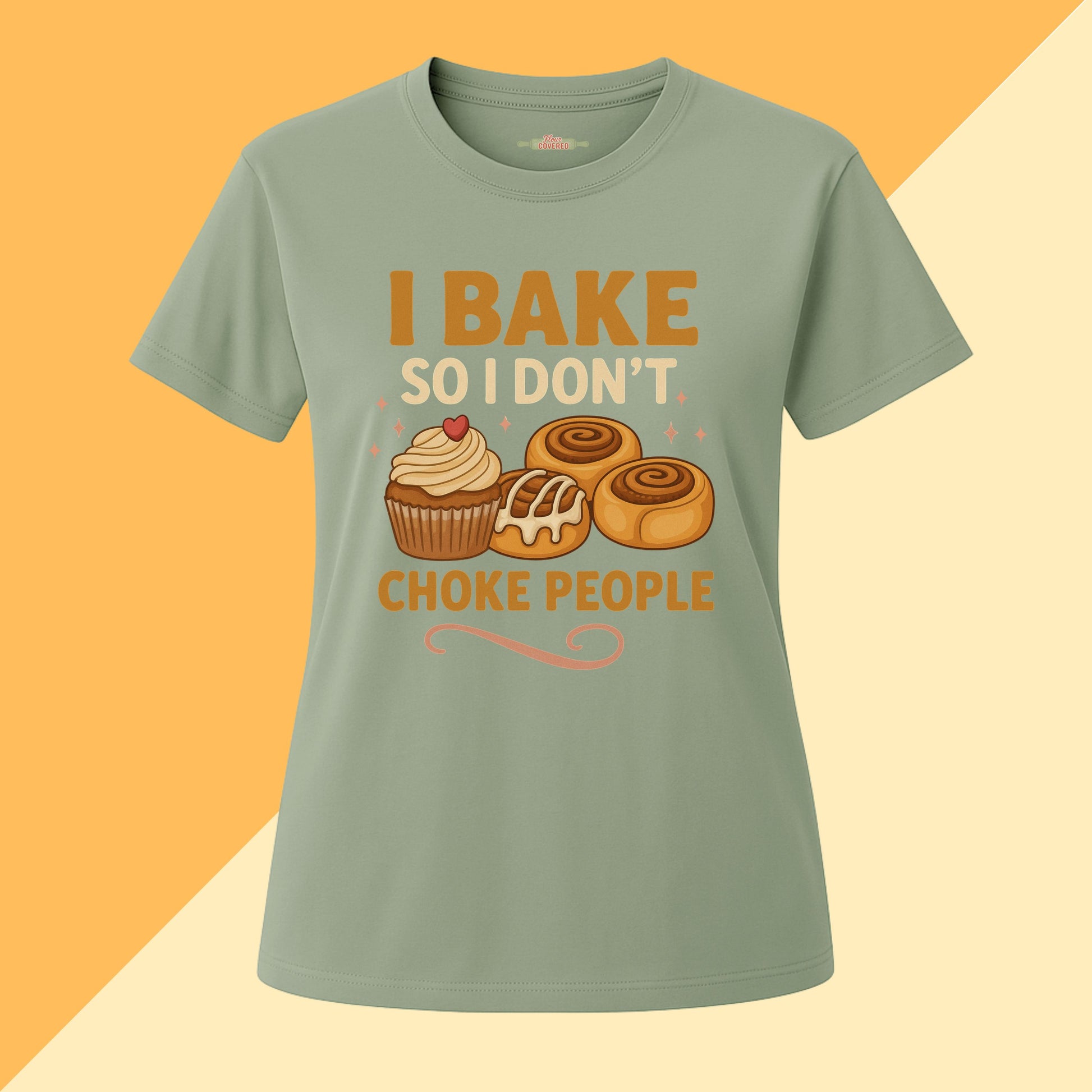 The I Bake So I Don’t Choke People Tee is soft, funny, and made for bakers who turn frustration into frosting.